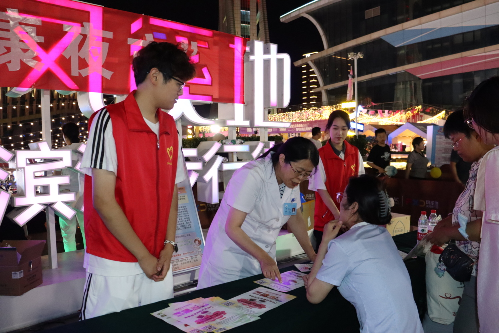 为让更多的居民享受优质、便捷、专业的健康服务,践行“2.5+2.5”的早临床、多临床、反复临床的教育理念,6月20日,博鱼体育-博鱼体育官网 在潍坊市人民广场开展“健康夜市”公益医疗服务活动,临床医学专业学生跟随第一附属医院专家现场服务,普及健康知识。