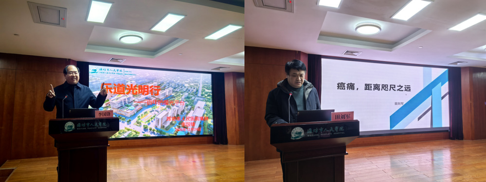 12月25日下午,博鱼体育 在第一附属医院外科楼四楼学术报告厅举办第九期“乐道传薪 名医讲坛”活动。第一附属医院主任医师李国锋、田刘军担任主讲,学院教师和2022级临床医学专业学生参加。